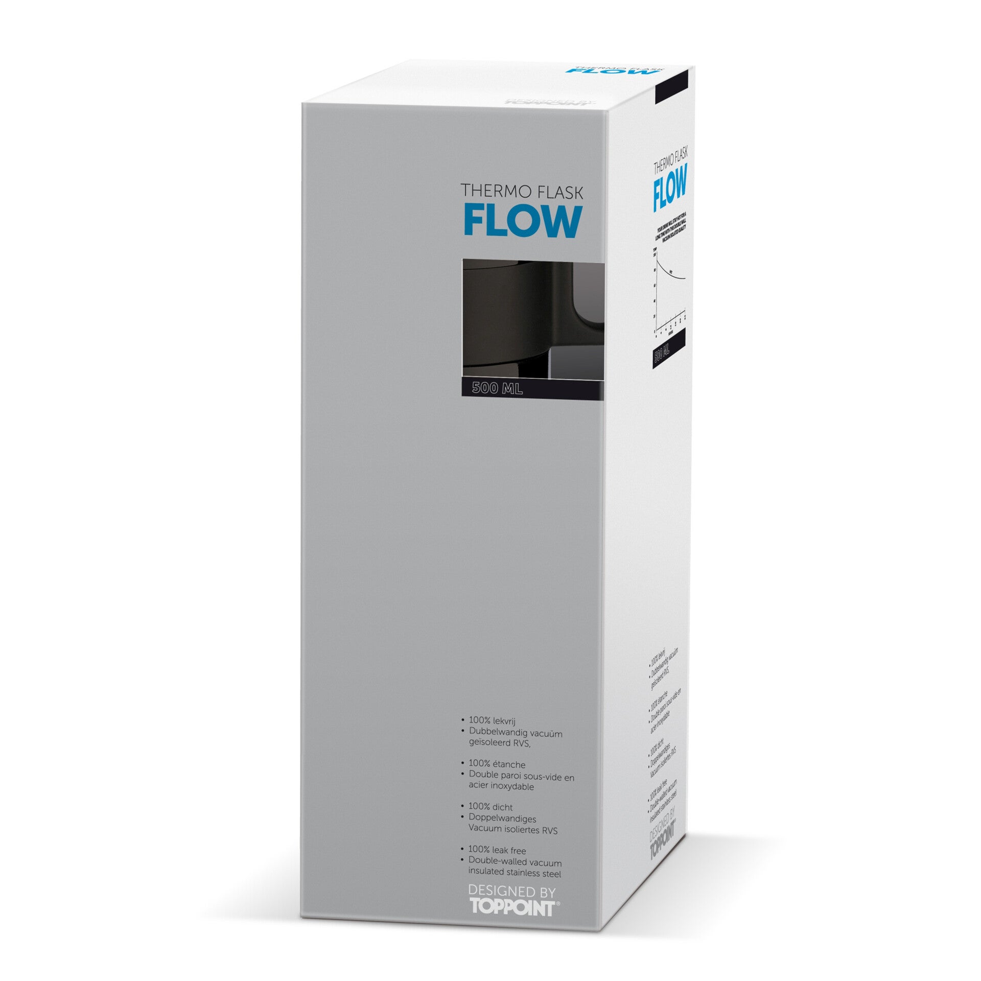 Dubbelwandig vacuüm geïsoleerde thermobeker uit de 'Flow' serie. De beker met design draaidop is 100% lekvrij en eenvoudig mee te nemen. Zowel de binnenwand als de buitenwand van de beker bestaan uit RVS en is van zeer hoogwaardige kwaliteit. Daardoor blijft het drinken langer op de gewenste temperatuur. Dranken blijven tenminste 12 uur warm of 24 uur koud.