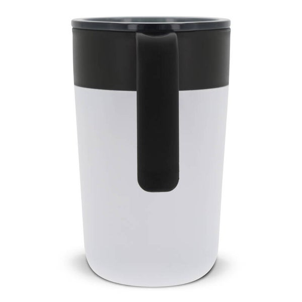 Dubbelwandige koffiebeker met deksel. Roestvrijstaal aan de buitenkant en PP aan de binnenkant. Dit model houdt koffie/thee langer warm door de dubbelwandigheid en de afsluitbare deksel met drinkopening. Wordt geleverd in een geschenkverpakking.