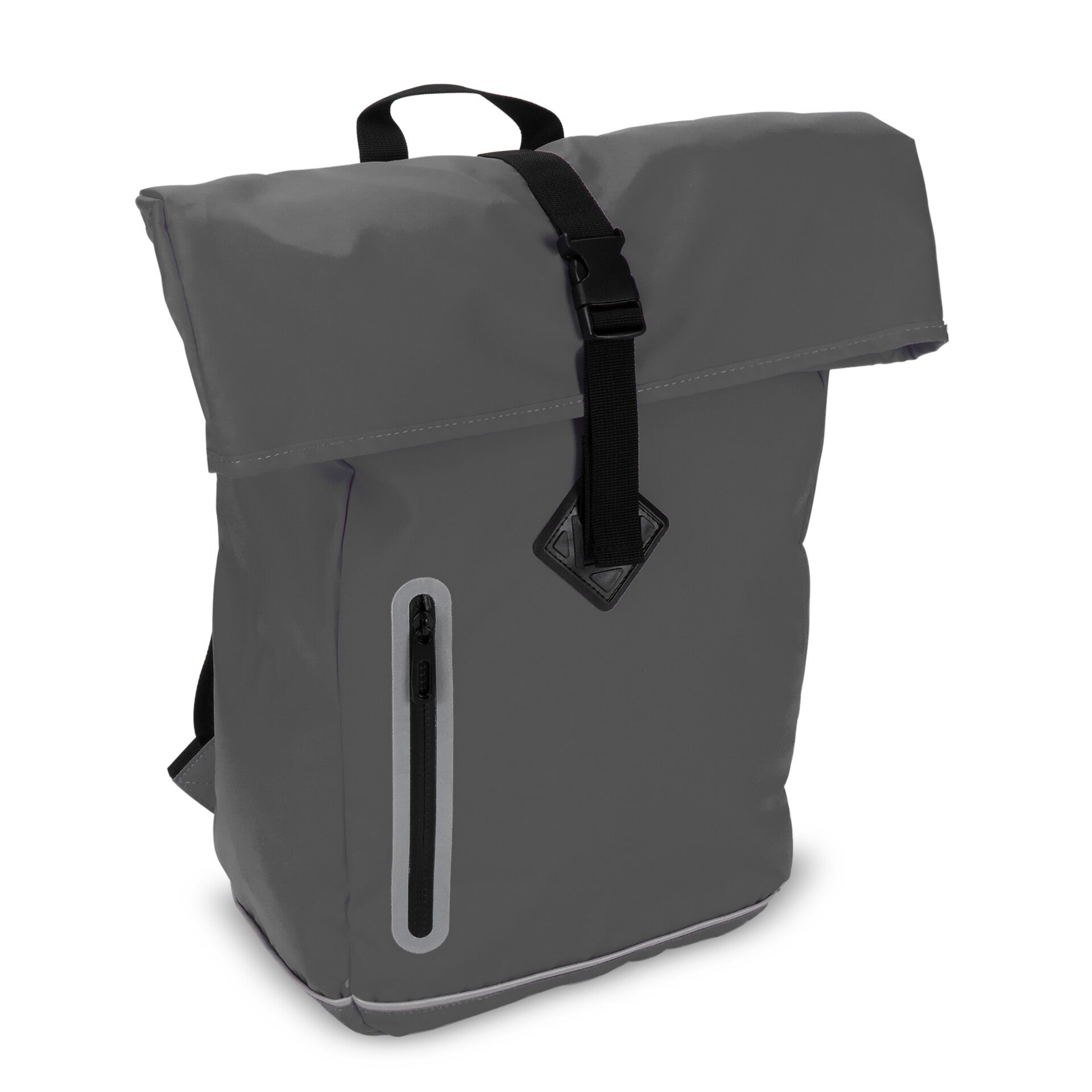 Stijlvolle rugzak met reflecterende details op zowel de voorzijde als de schouderbanden. De gladde coating op het materiaal, de oprolbare bovenkant als de naadloze rits maken deze tas waterafstotend (IPX1). Het rugpaneel en de schouderbanden zijn geschuimd voor extra draagcomfort.