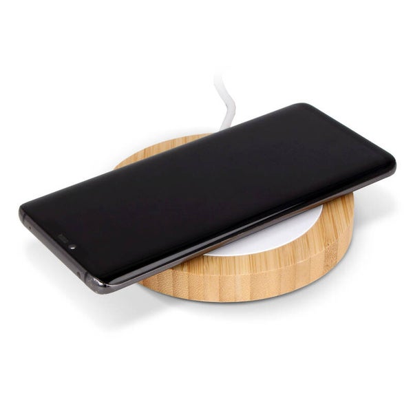 Draadloze oplader, gemaakt met bamboe en gerecycled abs-materiaal. Geschikt voor mobiele telefoons die Qi ondersteunen. Output: 5W, 7.5W, 10W, 15W. Bescherming tegen te hoge temperaturen. Met groot drukoppervlak voor full colour opdruk en incl oplaadkabel met een lengte van 1 meter. Ideaal voor je groenere en duurzamere (thuis)kantoor.