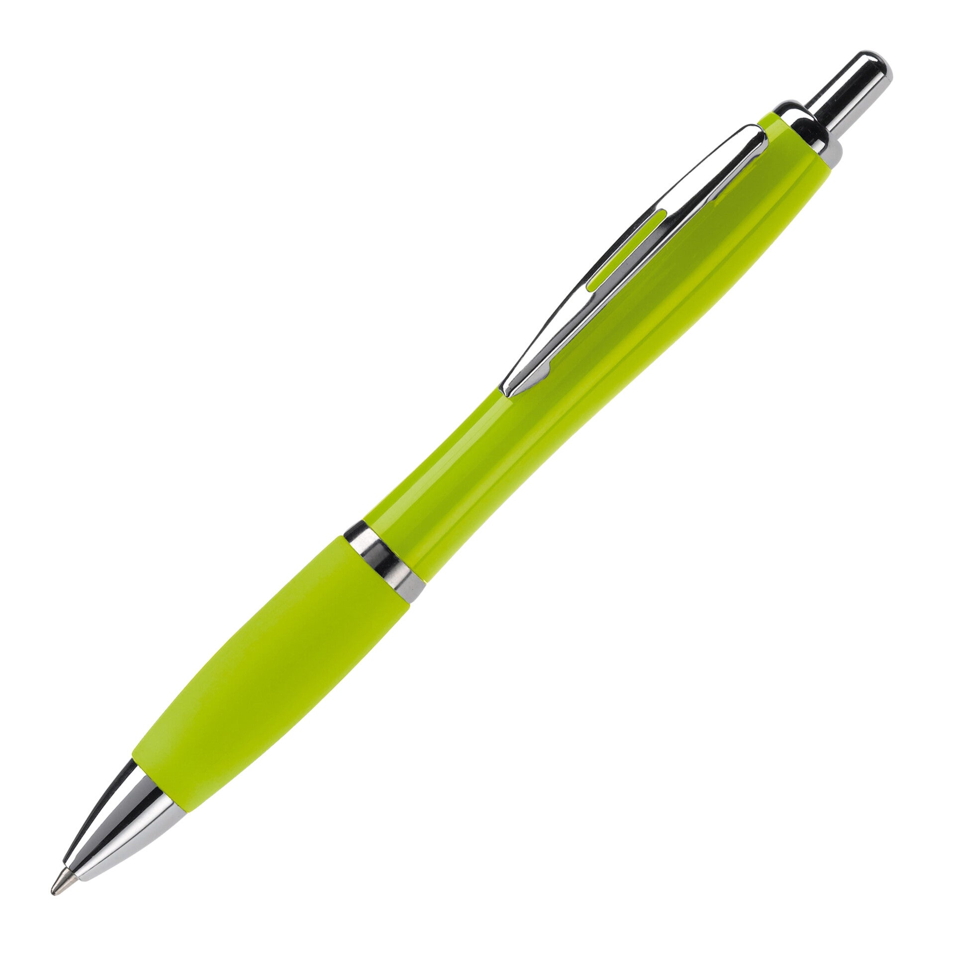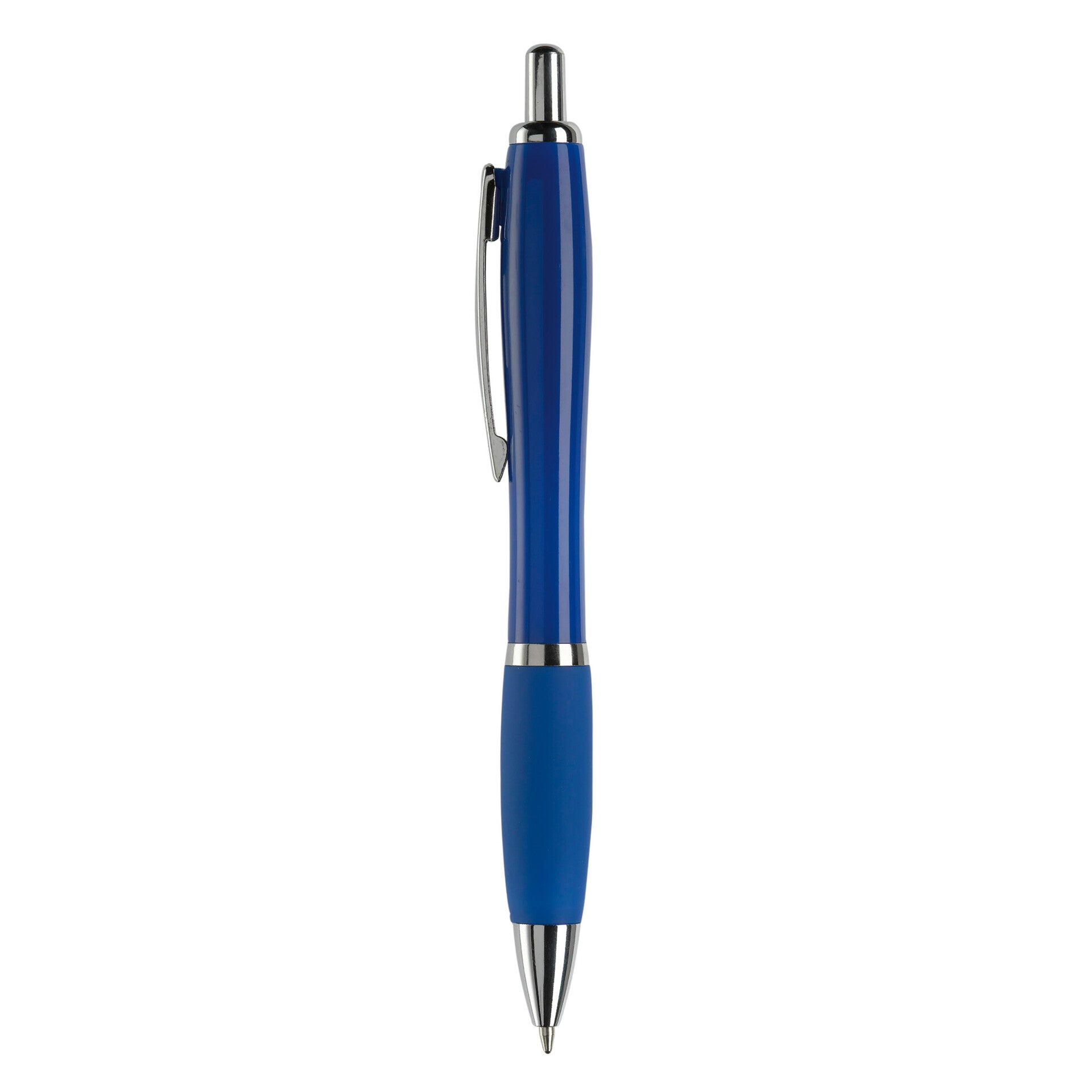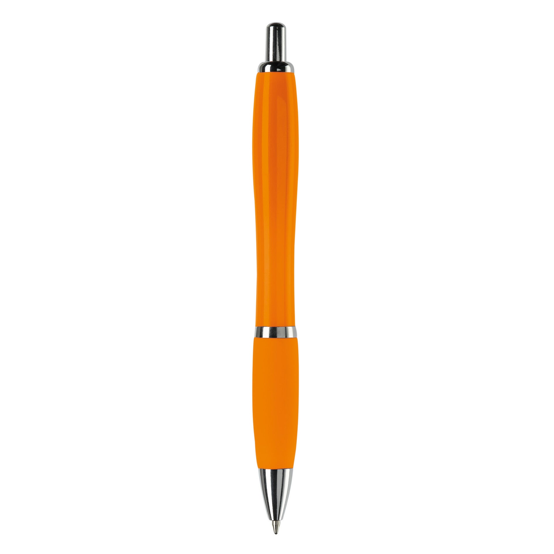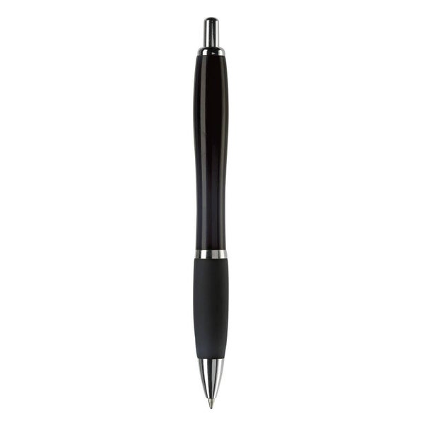 Hardcolour balpen met metalen clip, metal look drukknop, tussenring en penpunt. De pen bevat een blauwschrijvende Jumbo vulling. Vanaf 10.000 stuks andere kleurcombinaties mogelijk.
