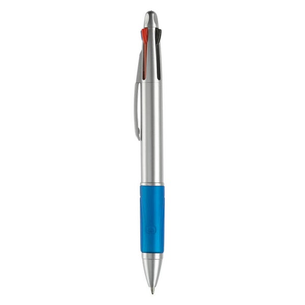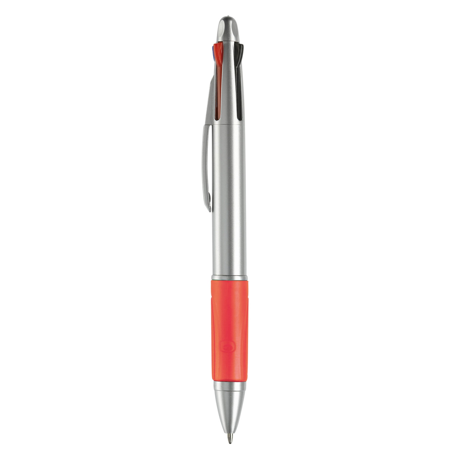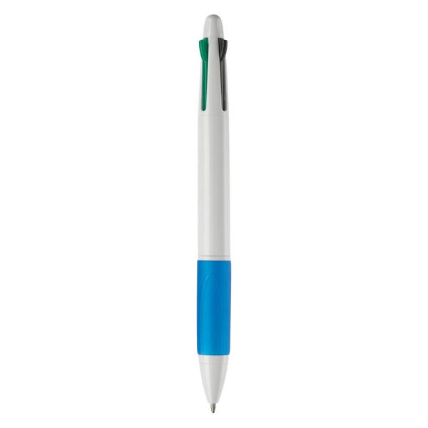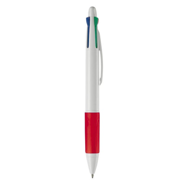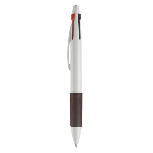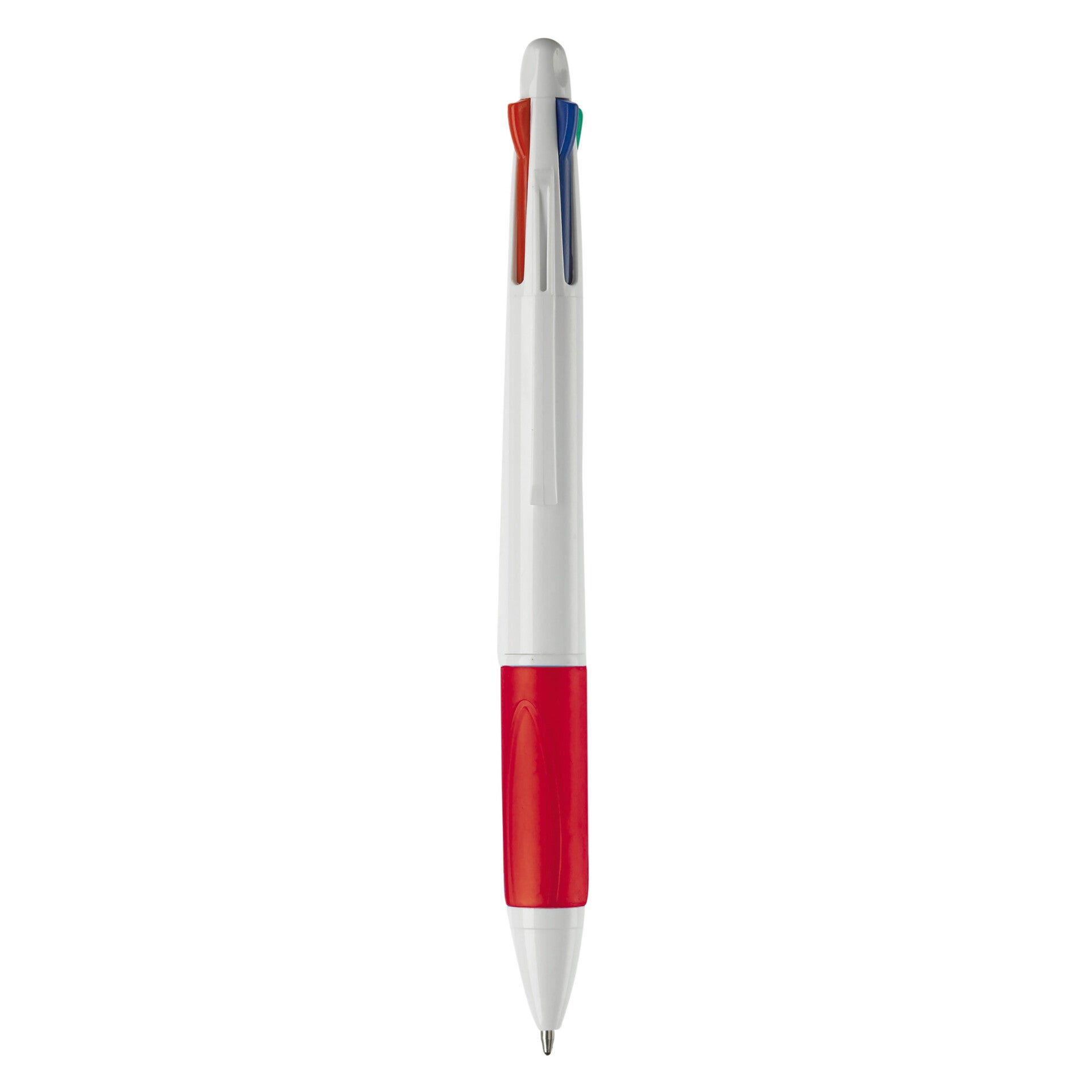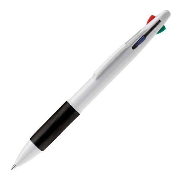 Witte, hardcolour balpen met vier schrijfkleuren en gekleurde grip.