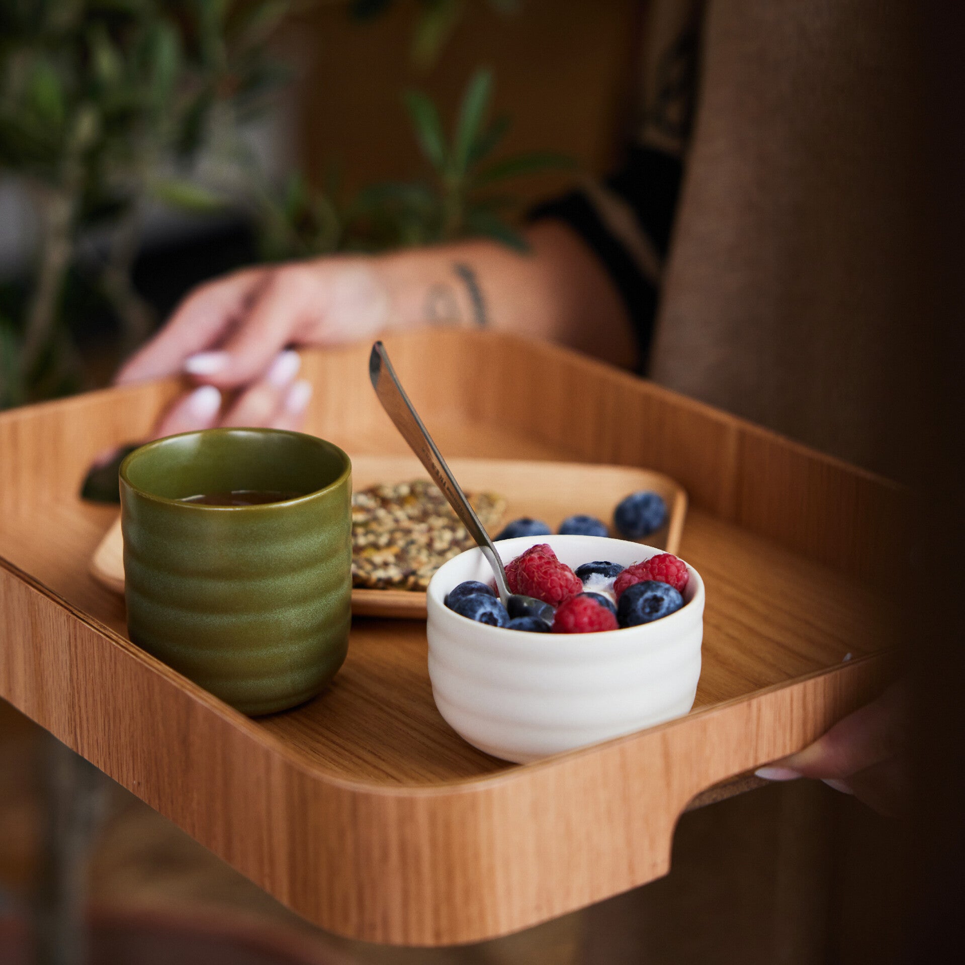 Het Hanna dienblad is gemaakt van rood eikenhout uit gecertificeerde verantwoorde bosbouw - een geliefd materiaal dat duurzaam is en er goed uitziet in elk huis. Het dienblad is rechthoekig met omgebogen randen. De handgrepen zijn geïntegreerd voor een praktische en stabiele werking. Een stijlvol vormgegeven dienblad om elke dag met trots te kunnen gebruiken.